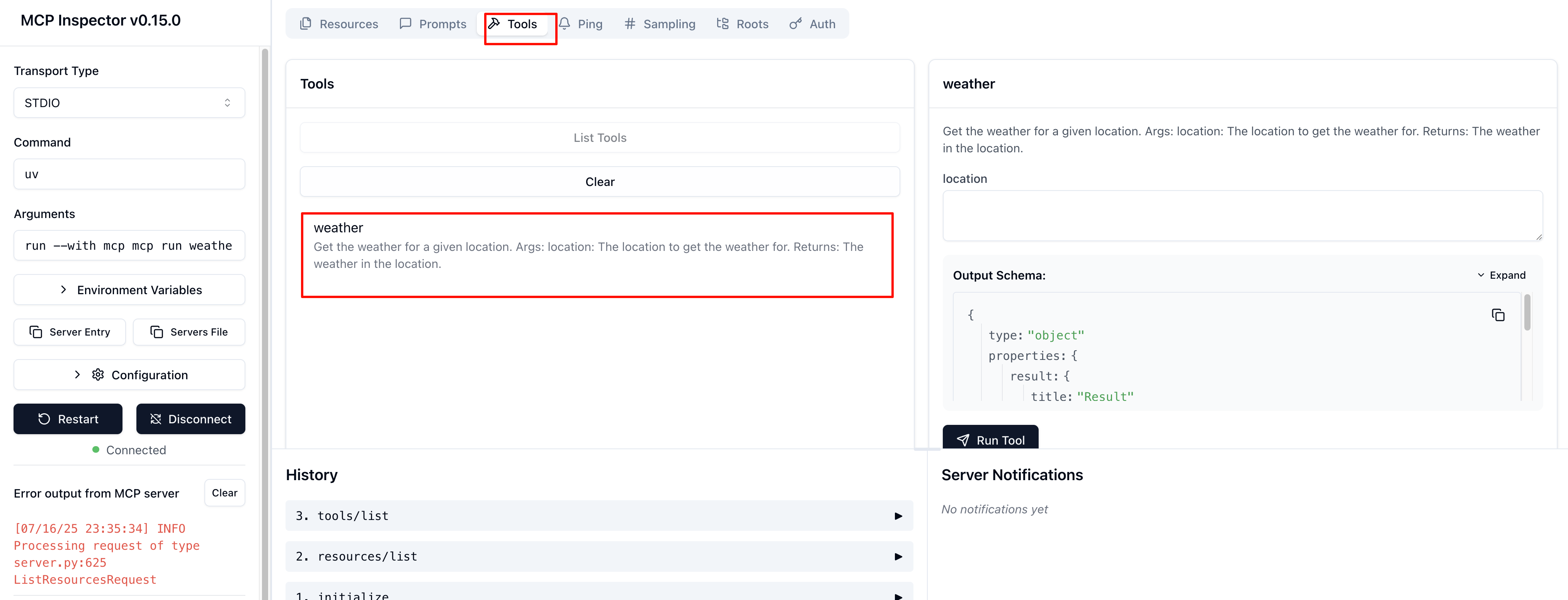 mcp dev weather.py