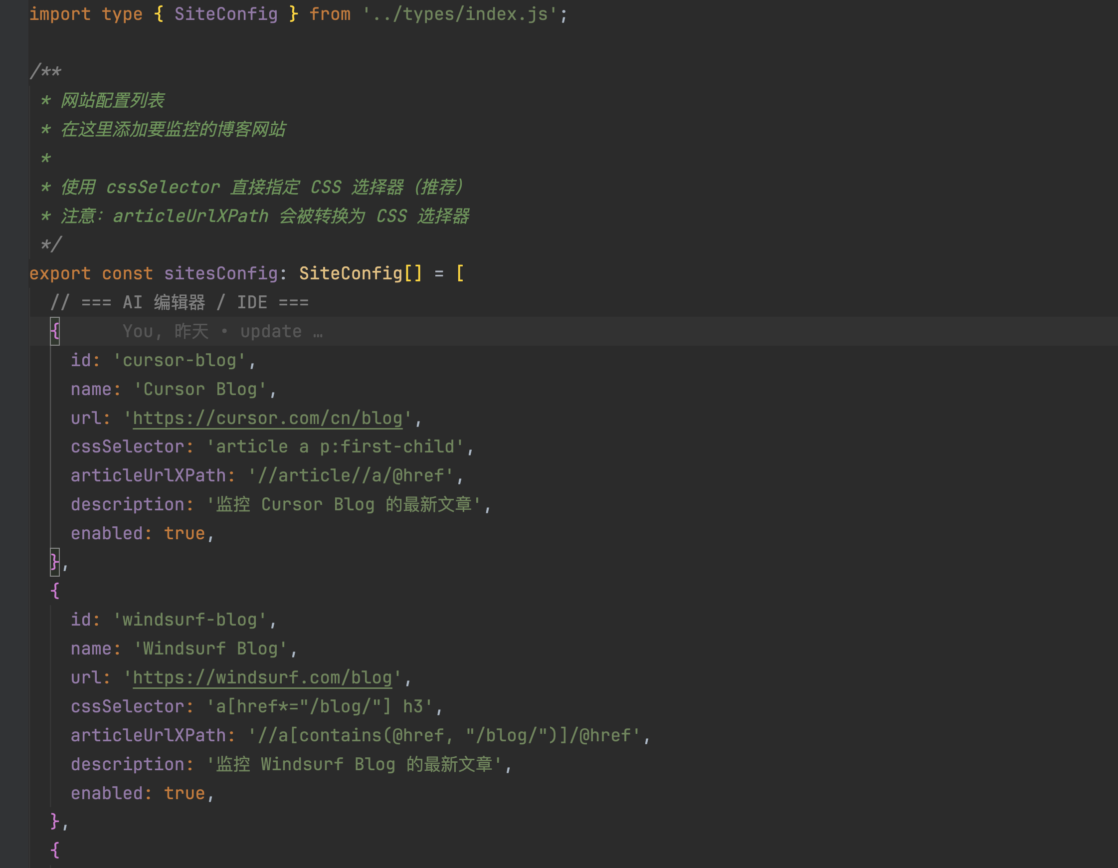 - 这里再讲一下如何配置新的博客网站,我最开始是找到每一个博客的文章的html元素,拷贝下来让cursor提取xpath,但我发现cursor提取出来的在ts抓取全局页面的时候,就玩不转了。我这里就笨了,其实你直接把博客的url给他,cursor自己会打开chrome进行提取,速度快,效果好,还能自己完成测试。真是厉害。