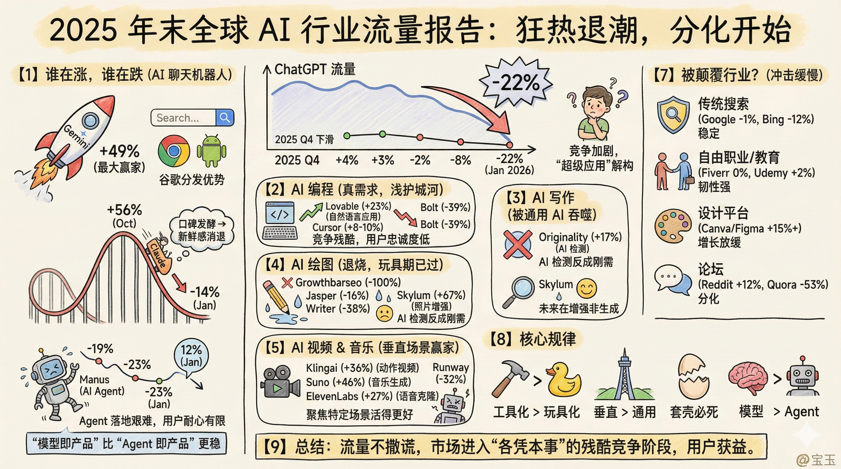 1.2 2025年末全球 AI 行业流量报告:狂热退潮,分化开始 | 宝玉的分享