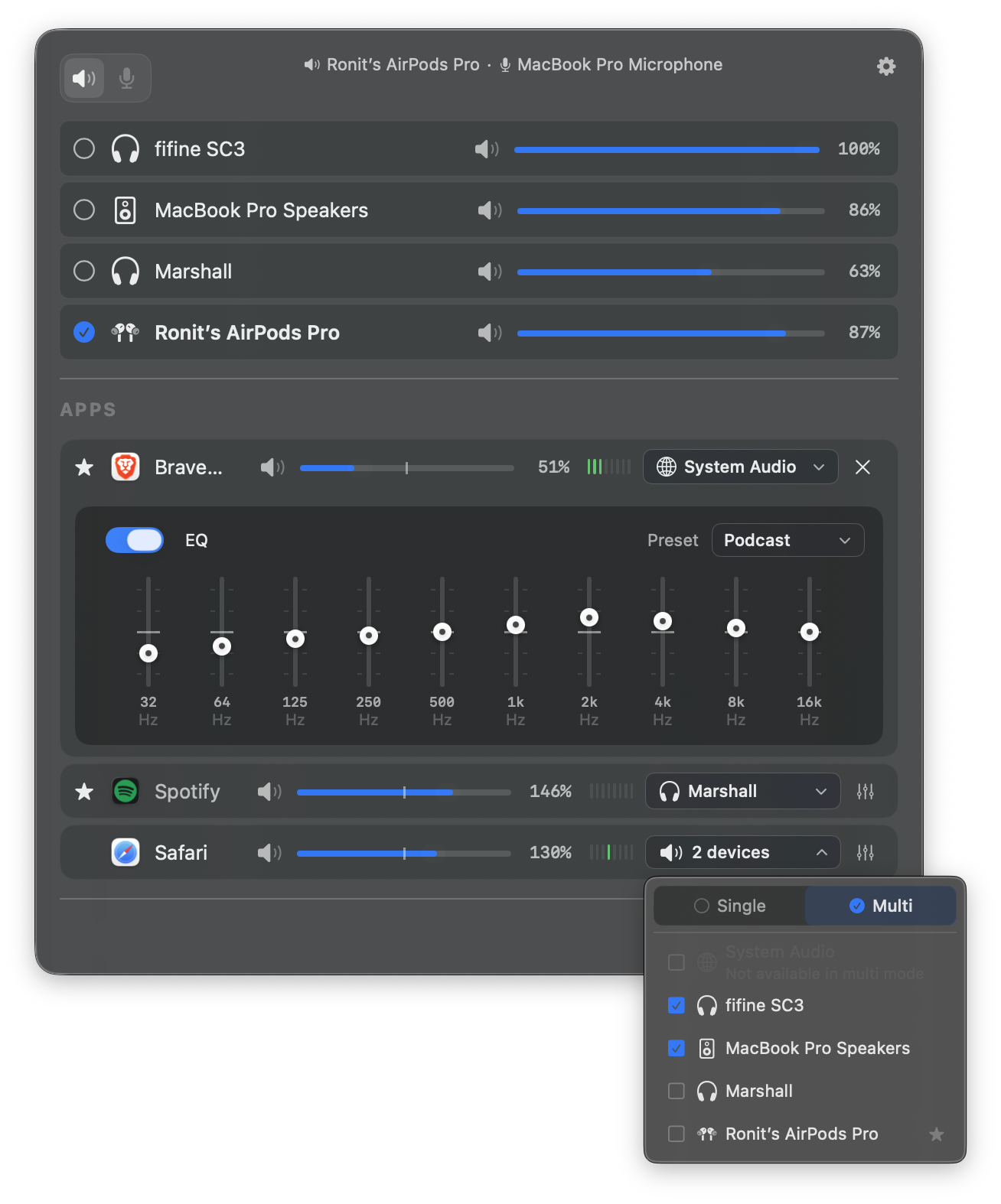 2.1 ronitsingh10/FineTune: FineTune, a macOS menu bar app for per-app volume control, multi-device output, audio routing, and 10-band EQ. Free and open-source.