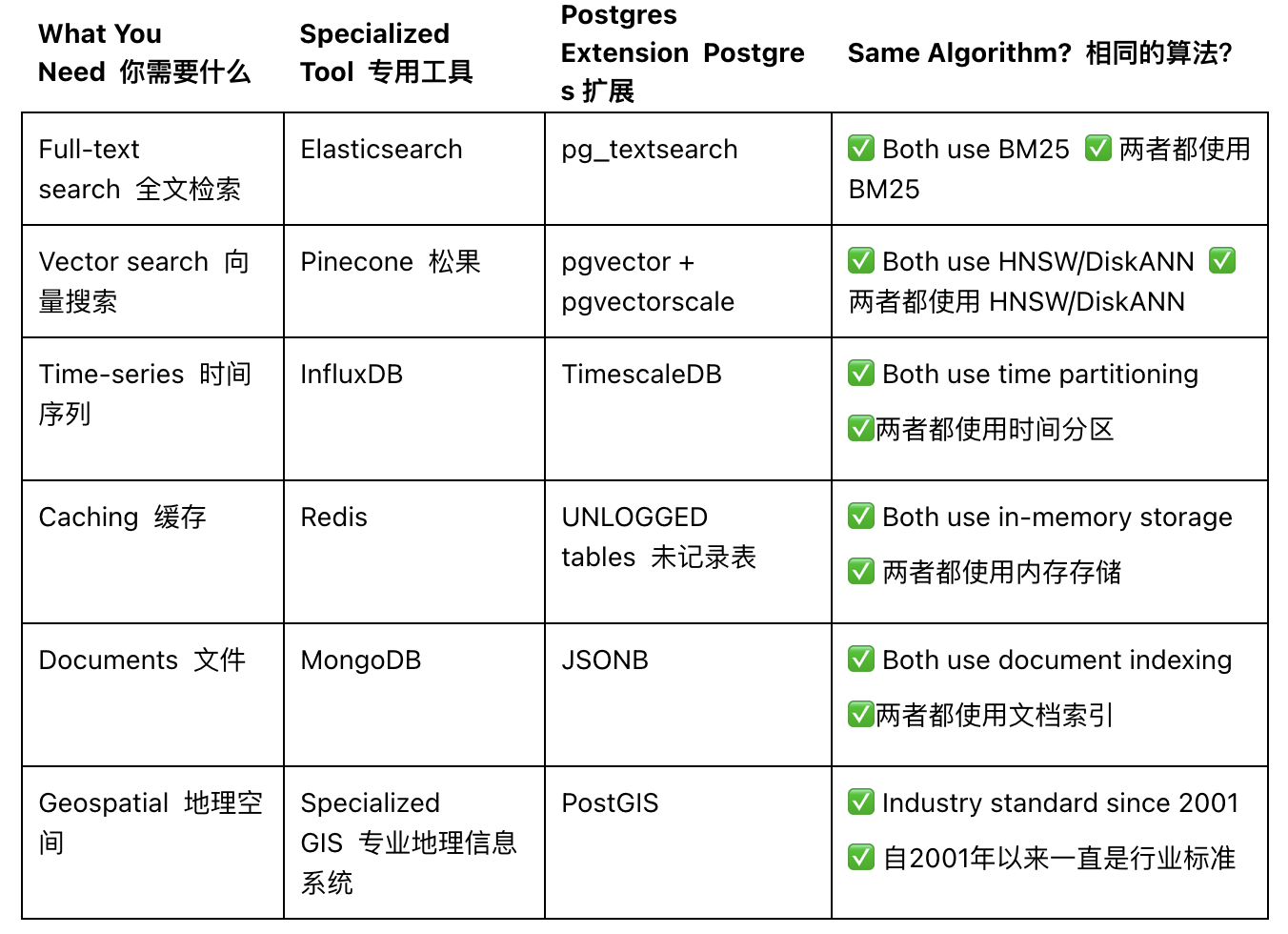 CREATE EXTENSION postgis;- 实现与 Elasticsearch 完全相同的 BM25 算法